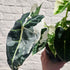 Alocasia micholitziana originates from the tropical rainforests of Southeast Asia, where it grows in warm, humid understory conditions. The ‘Frydek’ form was selected for its elegant arrow-shaped leaves and rich, velvety texture, while the variegata version is a rare cultivated mutation prized for its striking white marbling. This combination of plush foliage and high-contrast variegation has made it one of the most sought-after Alocasia varieties among collectors and foliage enthusiasts.