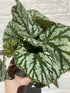 Begonia rex ‘Tap Dance’ is part of the Rex Begonia group, first introduced to Europe in 1858 from northeastern India, southern China, and Vietnam. The arrival sparked a wave of hybridising, resulting in over 500 varieties today. This particular cultivar is prized for its dramatic, large fuzzy leaves, featuring dark green veins over a silvery surface, making it a standout ornamental houseplant known for its showy, decorative foliage.